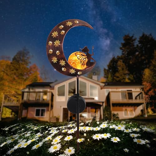【Size】100cm. Made of metal and glass, charming moon shape appearance. Ideal for decorating your path, garden, lawn or yard. The soft glow can create a romantic atmosphere and an unforgettable date